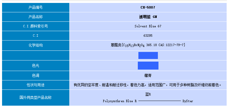 东莞市彩之虹 染料 透明蓝GN