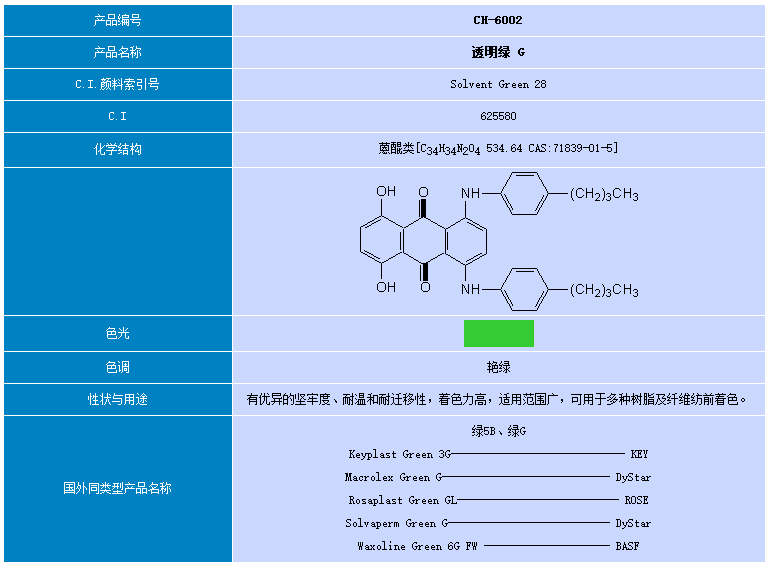 东莞市彩之虹 染料 透明绿G
