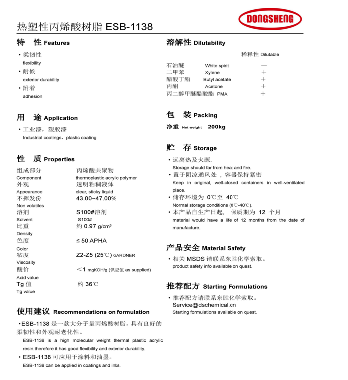 东胜化工(上海)热塑性丙烯酸树脂 ESB1138