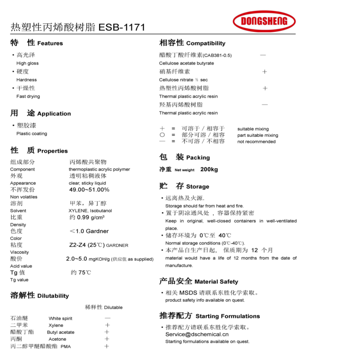 东胜化工(上海)热塑性丙烯酸树脂ESB1171