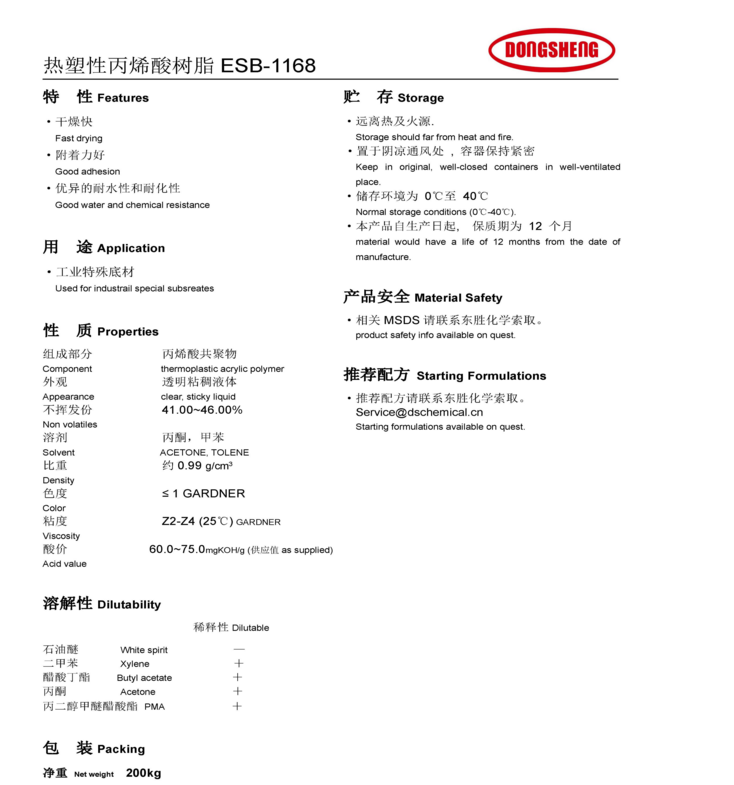 东胜化工(上海)热塑性丙烯酸树脂ESB1168