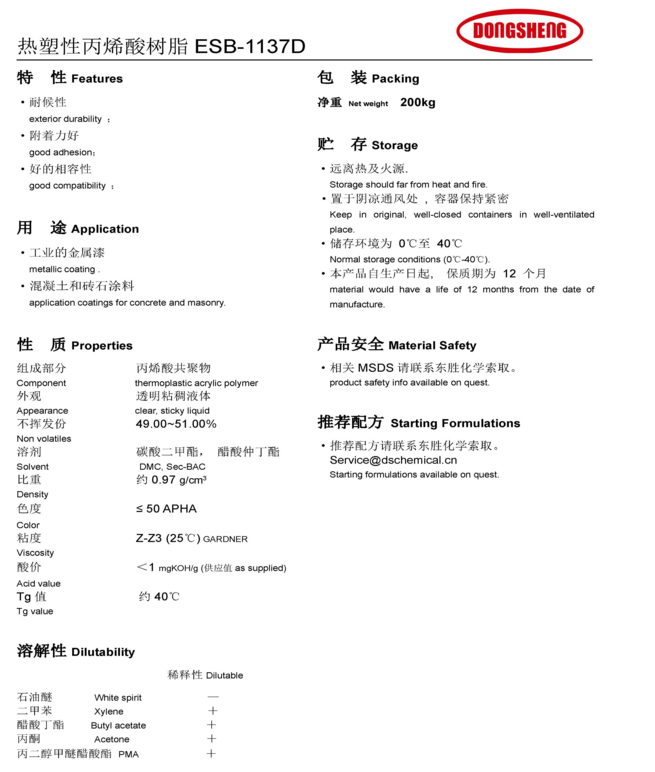 东胜化工(上海)热塑性丙烯酸树脂ESB1137D