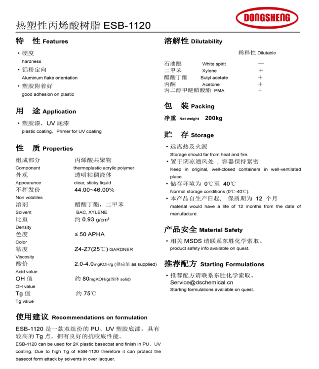 东胜化工(上海)热塑性丙烯酸树脂ESB1120
