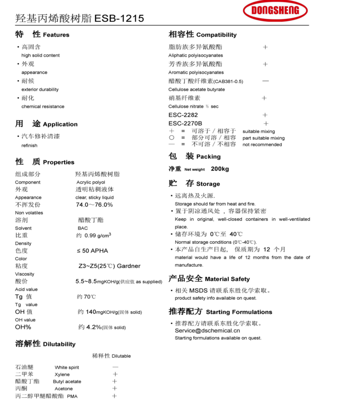 东胜化工(上海)羟基丙烯酸树脂ESB1215