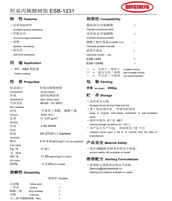 东胜化工(上海)羟基丙烯酸树脂ESB1231
