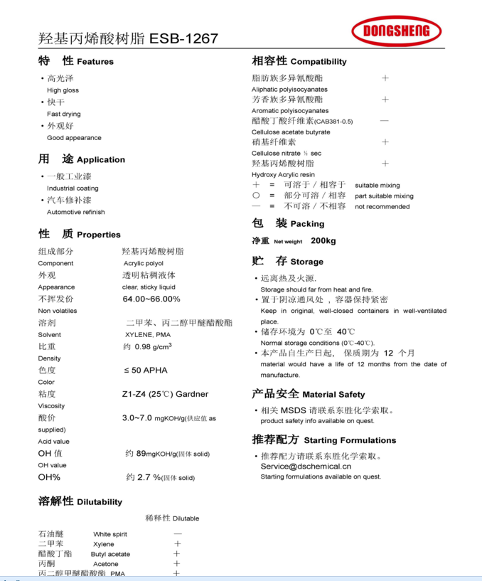 东胜化工(上海)羟基丙烯酸树脂ESB1267