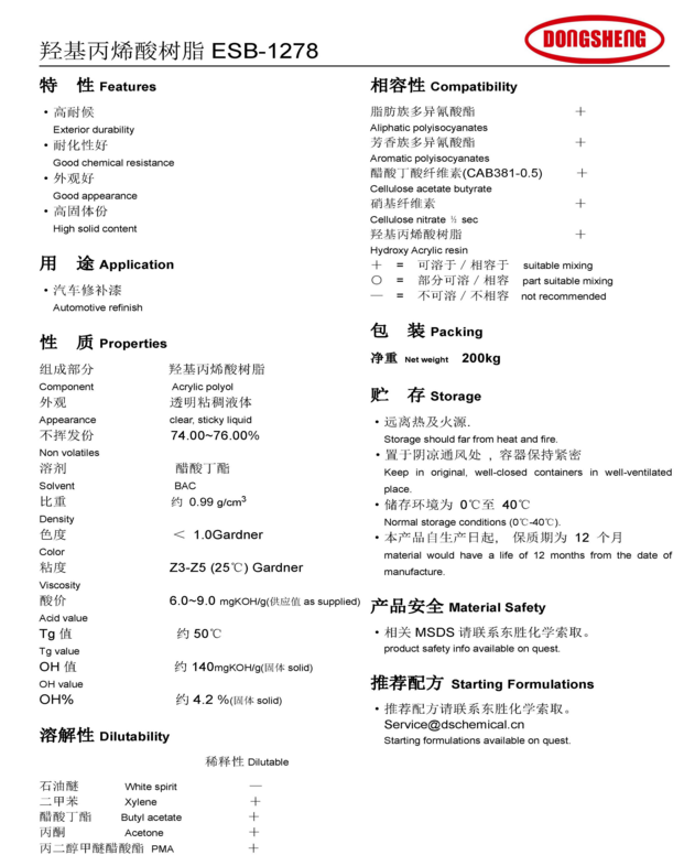 东胜化工(上海)羟基丙烯酸树脂ESB1278
