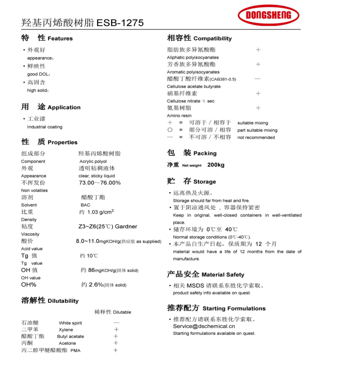 东胜化工(上海)羟基丙烯酸树脂ESB1275