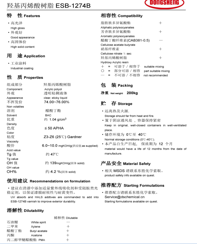东胜化工(上海)羟基丙烯酸树脂ESB1274B