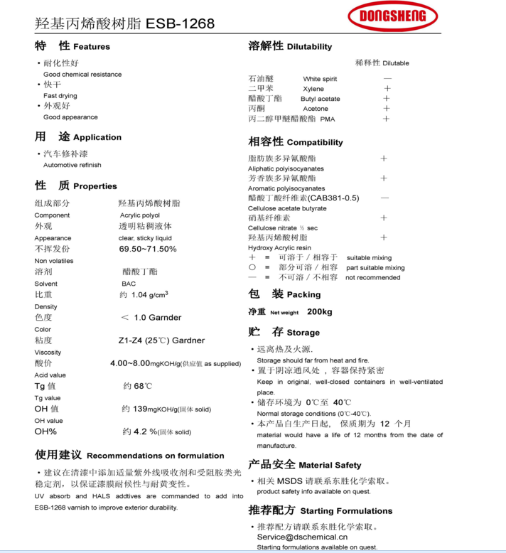 东胜化工(上海)羟基丙烯酸树脂ESB1268