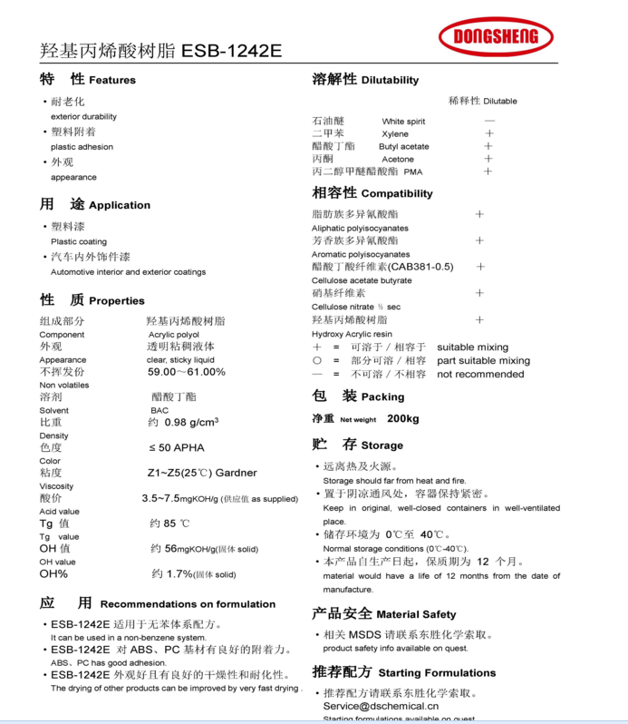 东胜化工(上海)羟基丙烯酸树脂 ESB1242E