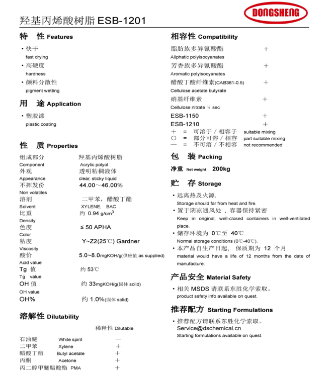 东胜化工(上海)羟基丙烯酸树脂 ESB1201