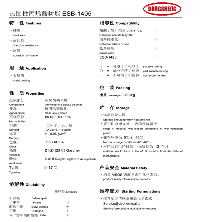 东胜化工(上海)热固性丙烯酸树脂 ESB1405