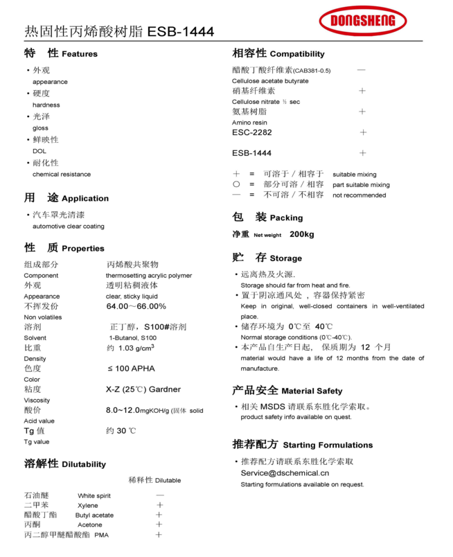 东胜化工(上海)热固性丙烯酸树脂 ESB1444