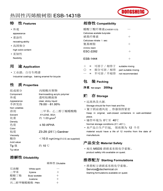 东胜化工(上海)热固性丙烯酸树脂 ESB1431B