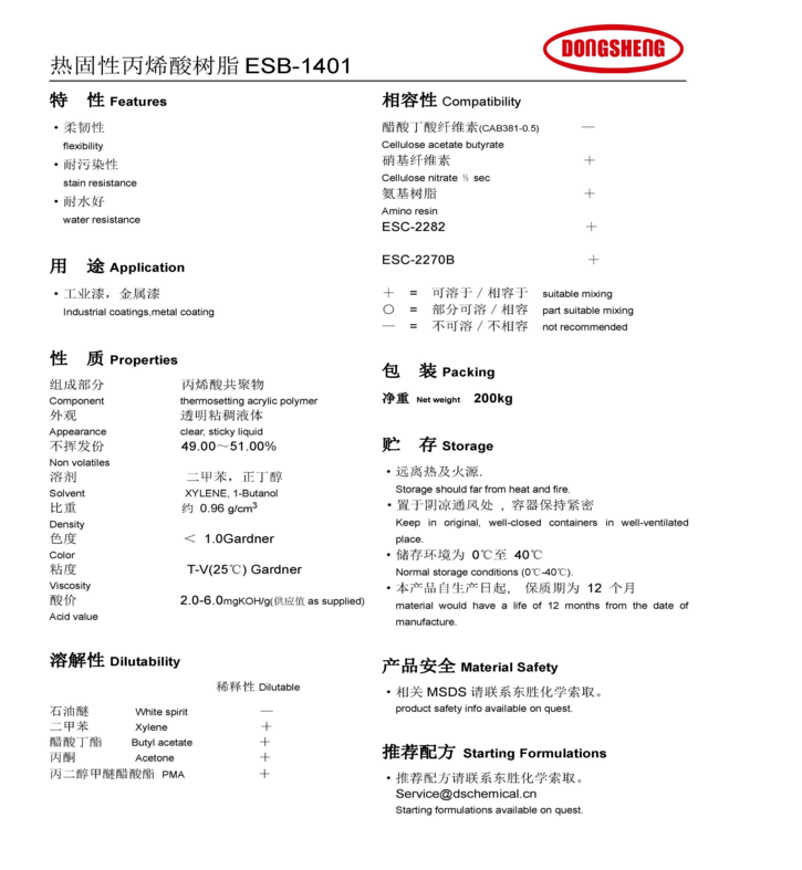 东胜化工(上海)热固性丙烯酸树脂 ESB1401