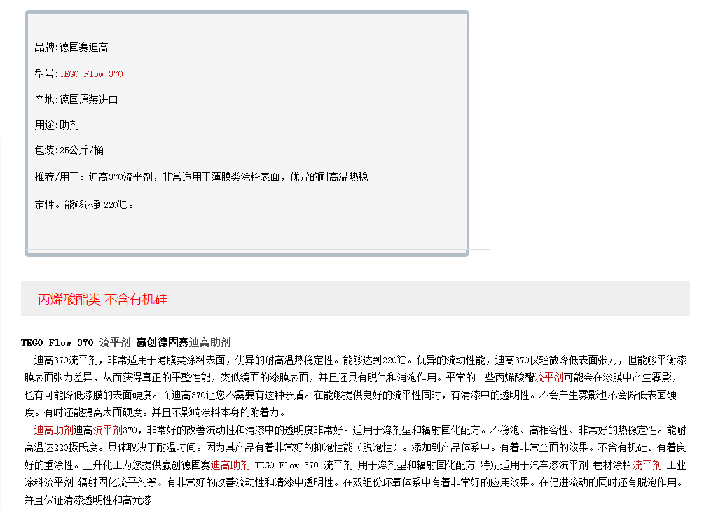 德国迪高TEGO Flow 370 流平剂