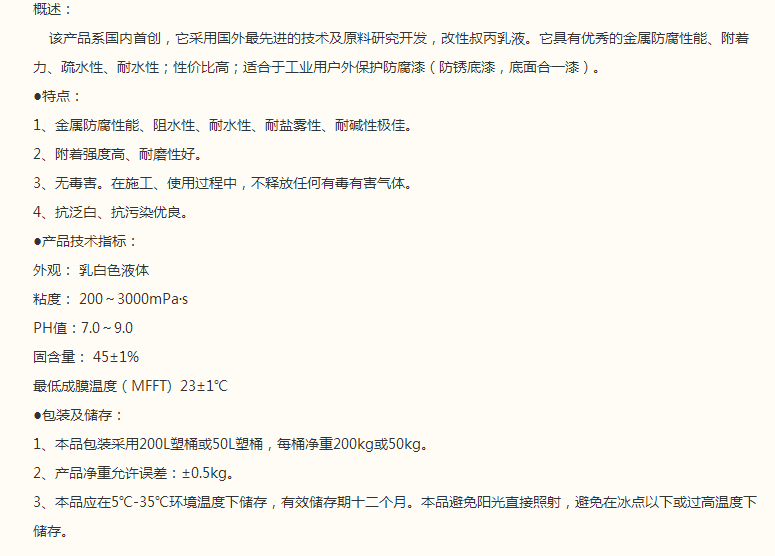 山东宝达 金属防锈漆乳液系列 PD-9E高性能防锈乳液