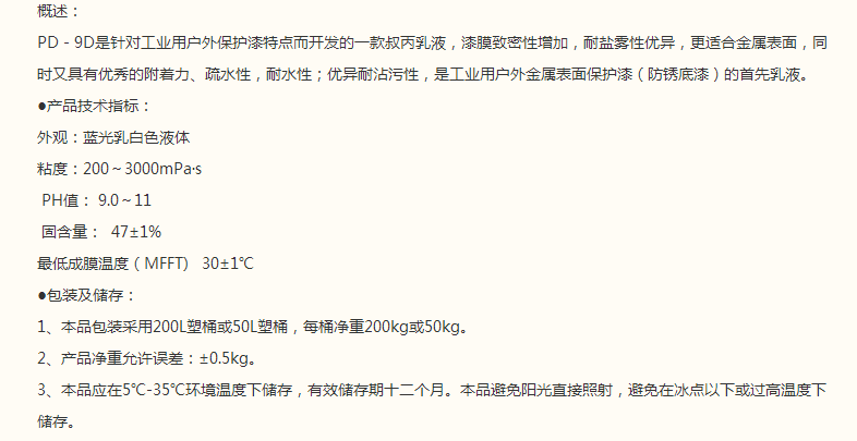 山东宝达 金属防锈漆乳液系列 PD-9D 高性能防锈乳液