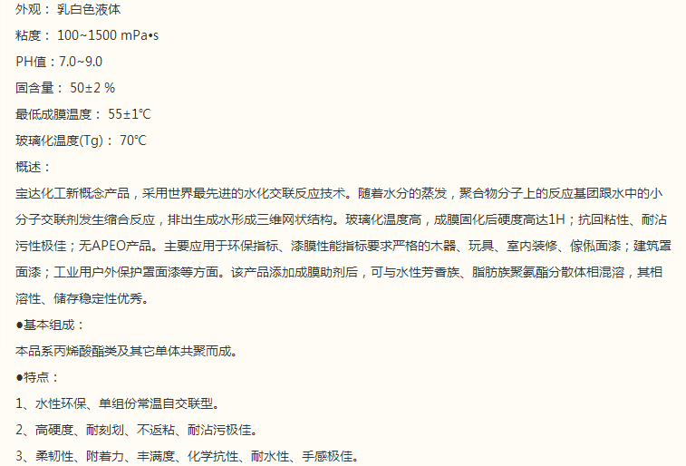 山东宝达 水性木器漆乳液系列 PD-Hiqua2000高硬度乳液
