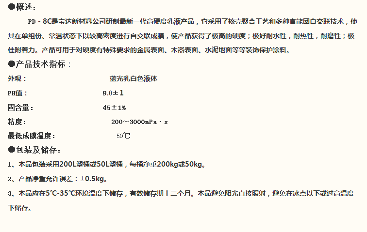 山东宝达 水性地坪漆乳液系列 PD-8C高硬度乳液