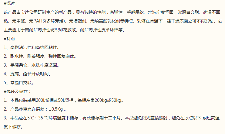 山东宝达 弹性乳液系列 PD-306A防粘弹性纺织印花乳液