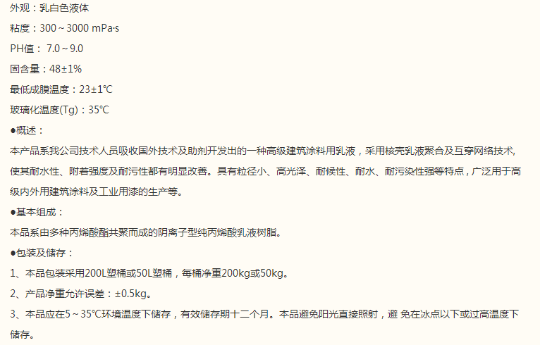 山东宝达 纯丙乳酸系列 PD—2 纯丙乳液