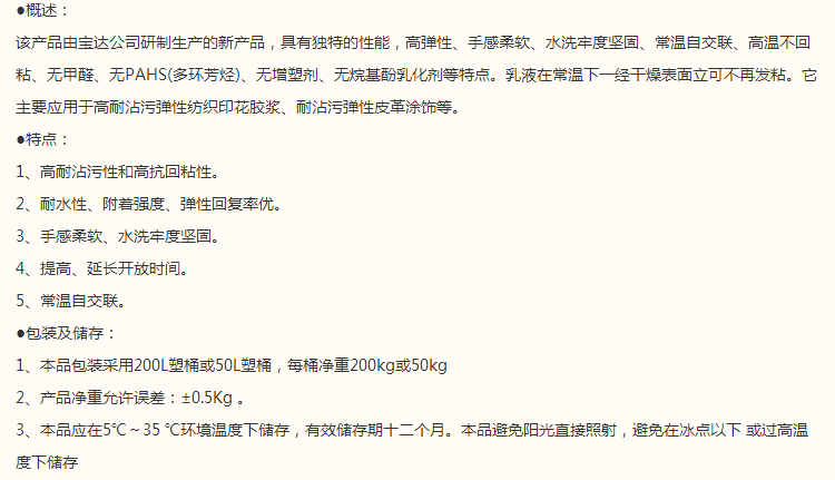山东宝达 纯丙乳酸系列 PD-306A防粘弹性纺织印花乳液