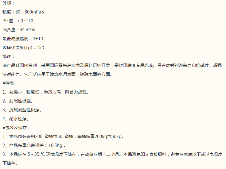 山东宝达 叔丙乳酸系列 PD—9C 叔丙乳液