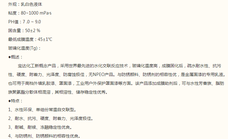 山东宝达 叔丙乳酸系列 Hiqua3000金属漆专用乳液