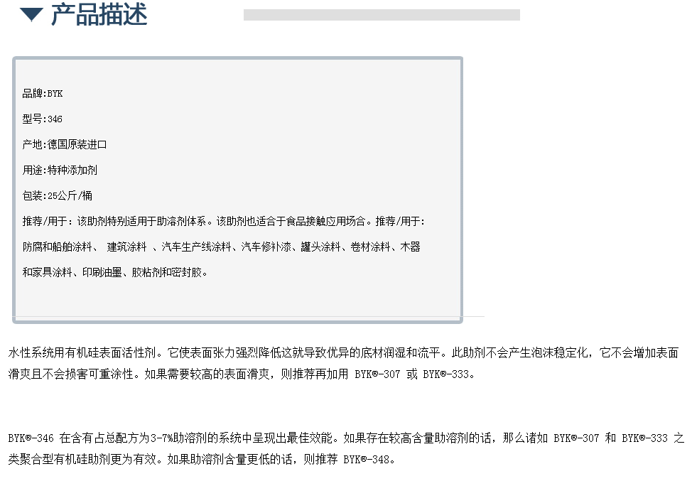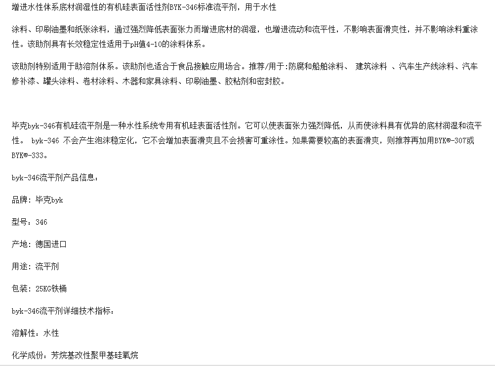 德国毕克有机硅表面活性剂流平剂BYK-346