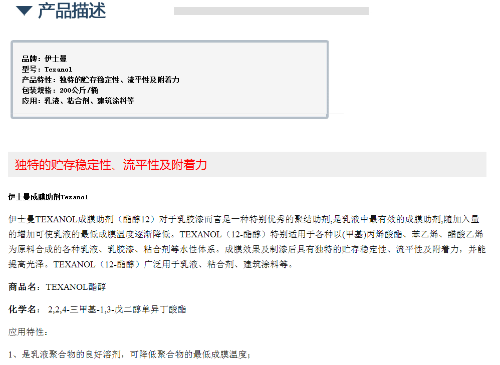 伊士曼TEXANOL成膜助剂(酯醇12)