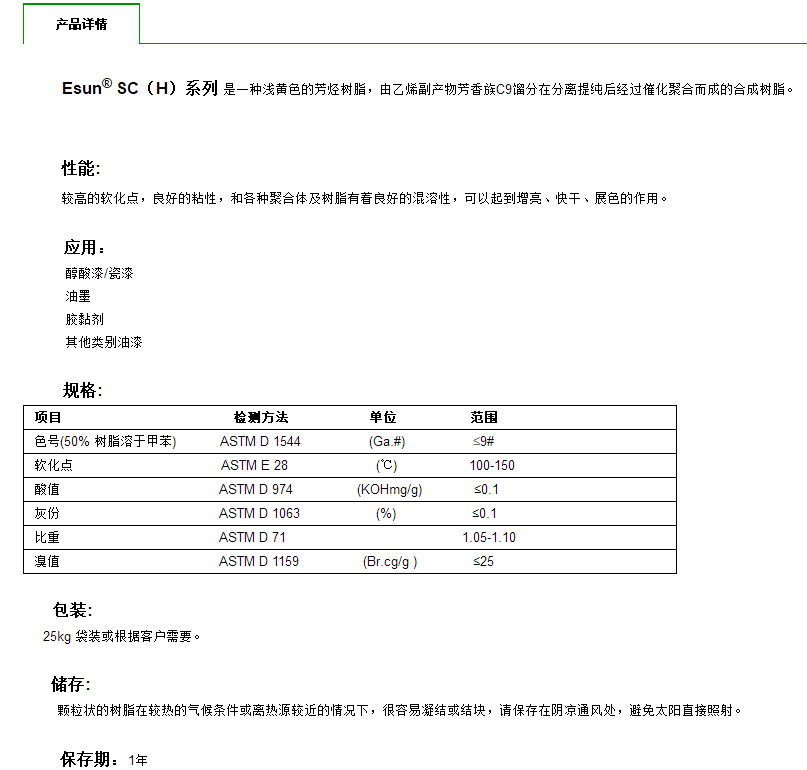 青岛伊森 石油碳氢树脂 C9 SC(H)系列