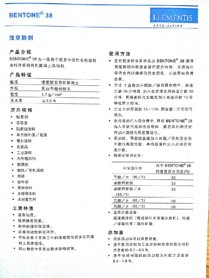海名斯·德谦有机膨润土 BENTONE 38