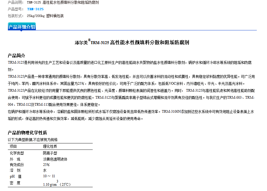 大连金鼎祥 建筑和功能性涂料助剂 分散剂 TRM-3125 高性能水性颜填料分散和阻垢防腐剂