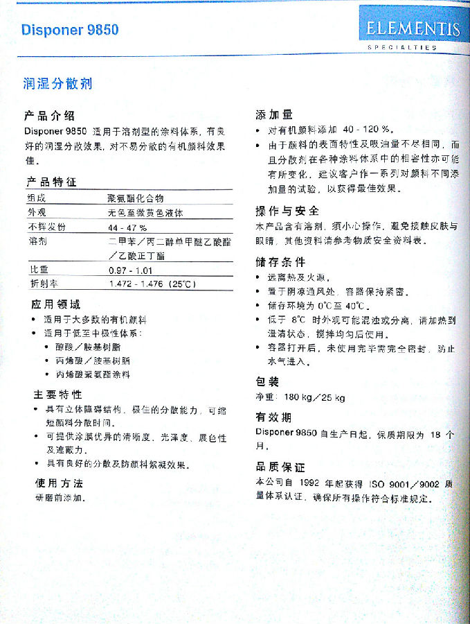 英国海名斯·德谦 DIsponer 9850 溶剂型润湿分散剂