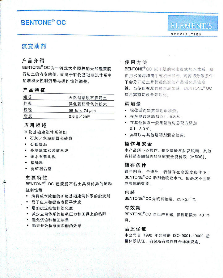 海名斯·德谦流变助剂 BENTONE OC