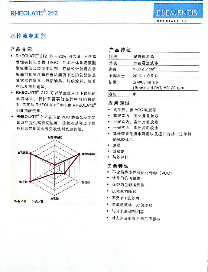 海名斯·德谦 水性流变助剂 RHEOLATE 212