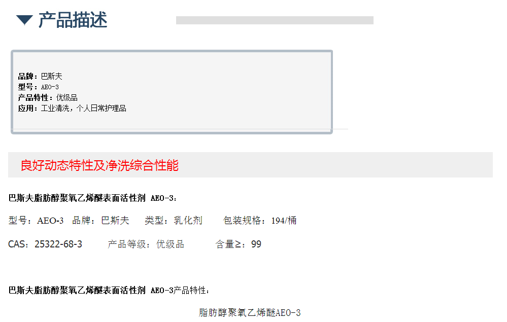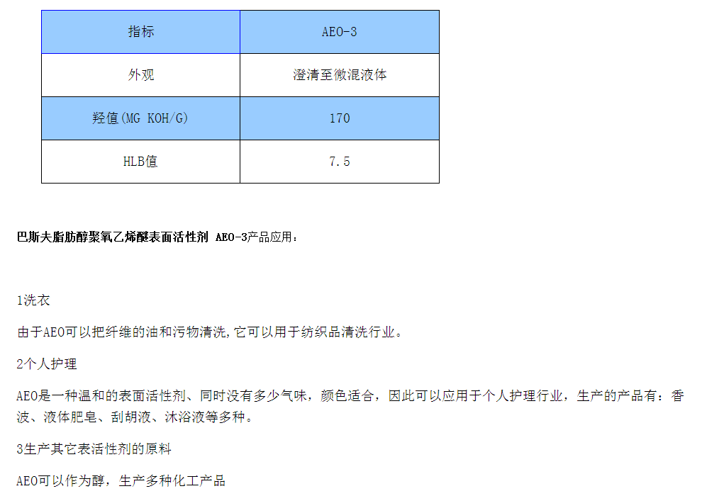巴斯夫脂肪醇聚氧乙烯醚表面活性剂 AEO-3