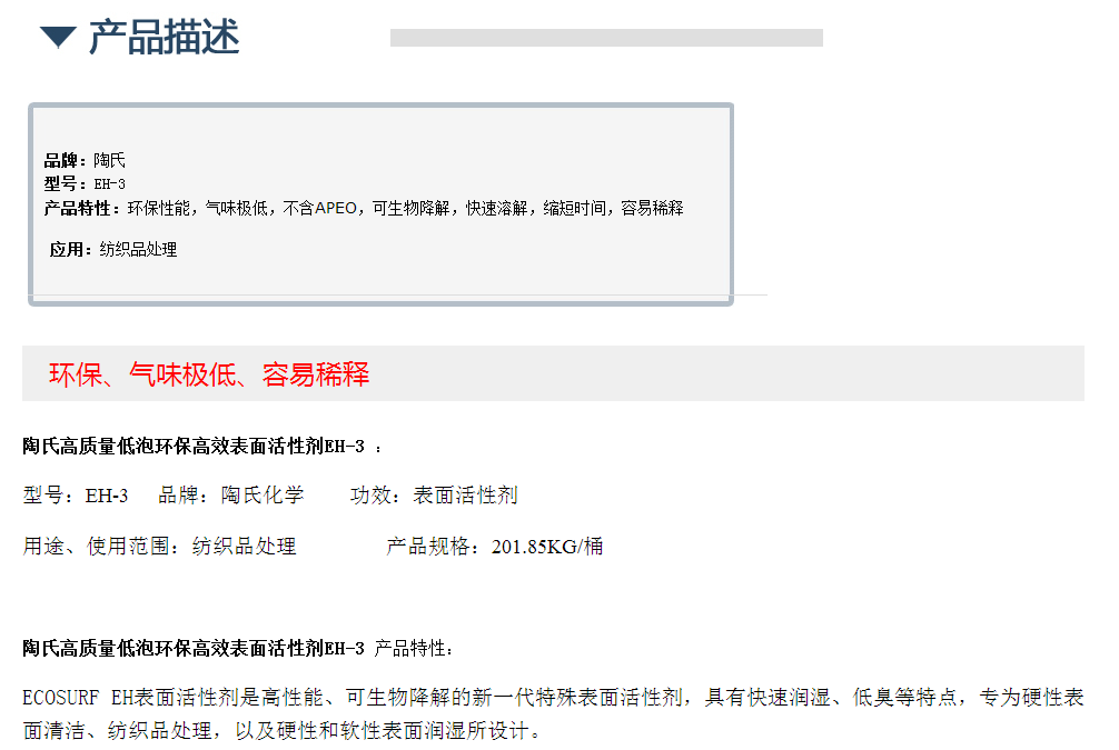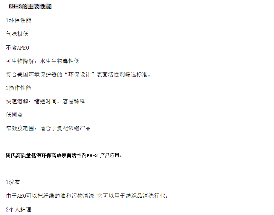 陶氏高质量低泡环保高效表面活性剂EH-3