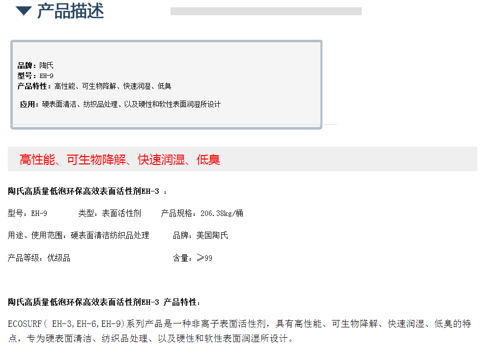 美国陶氏高效环保表面活性剂EH-9