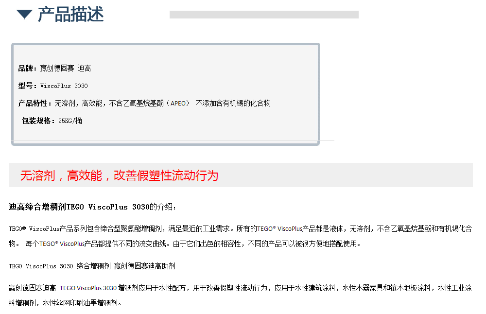 迪高缔合增稠剂TEGO ViscoPlus 3030