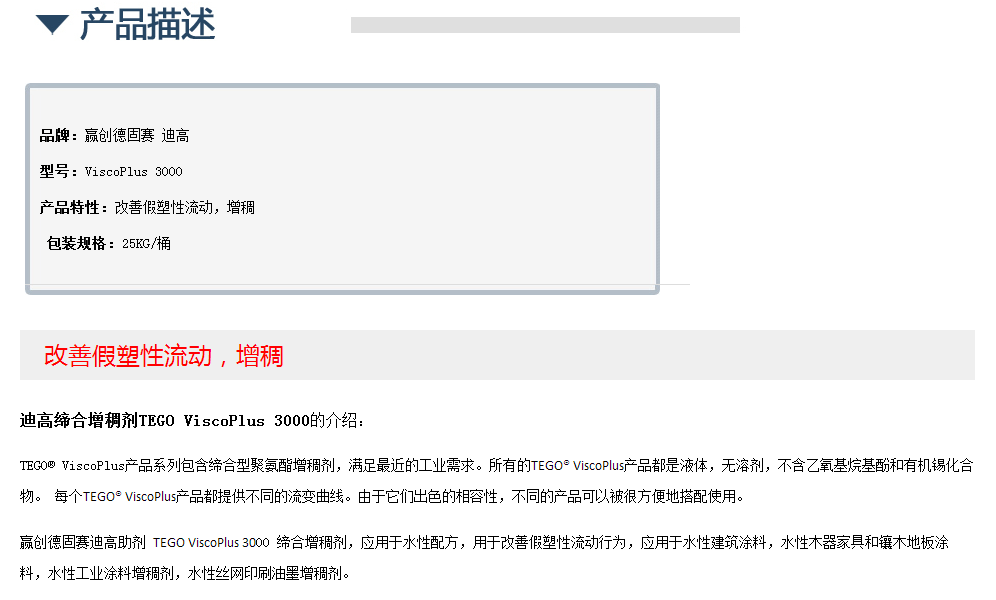 迪高缔合增稠剂TEGO ViscoPlus 3000