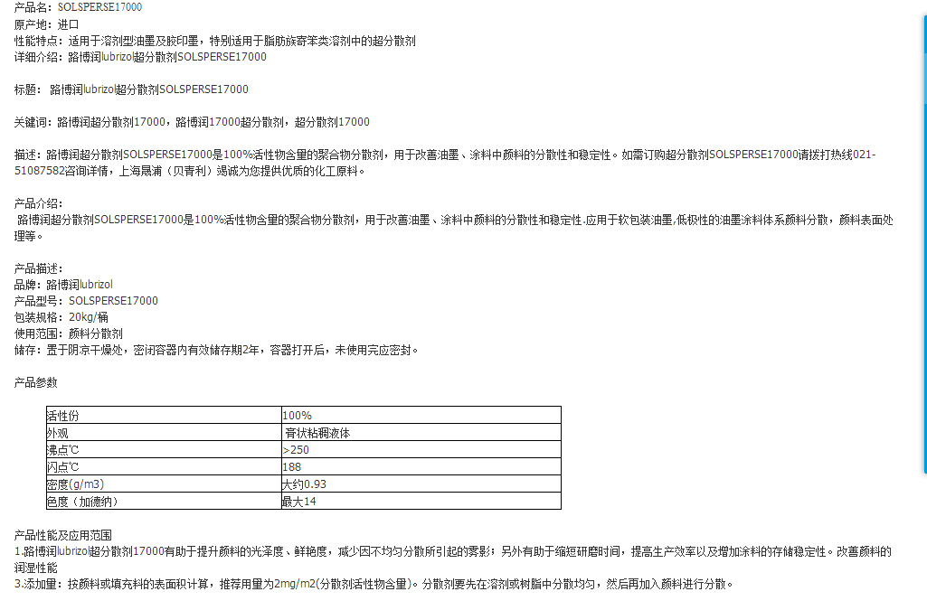 路博润SOLSPERSE17000分散剂
