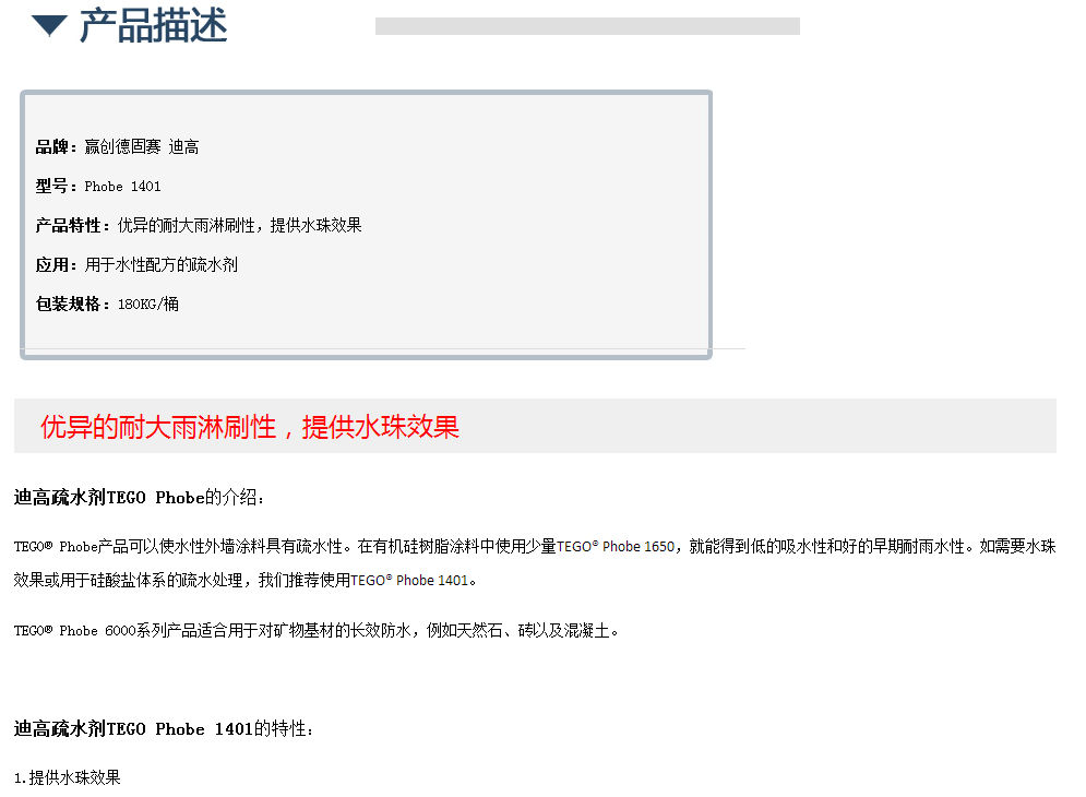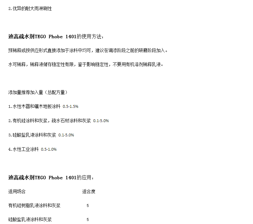 迪高疏水剂TEGO Phobe 1401