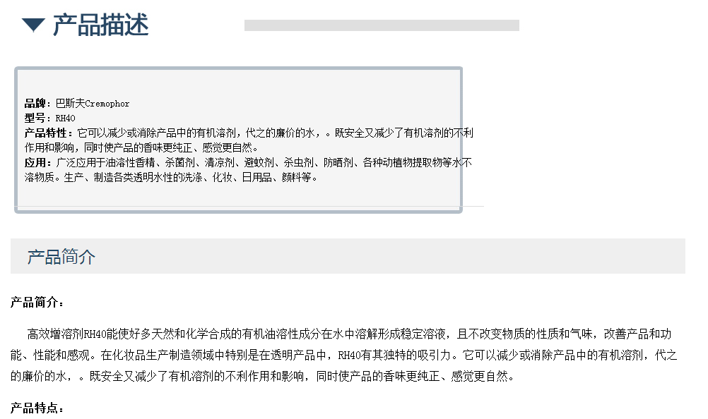 巴斯夫Cremophor RH40香精增溶剂