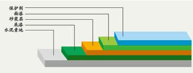 注意事项: 面漆决不可重涂,必须一次成膜,若返工,须从底层做起,其余同自流平。