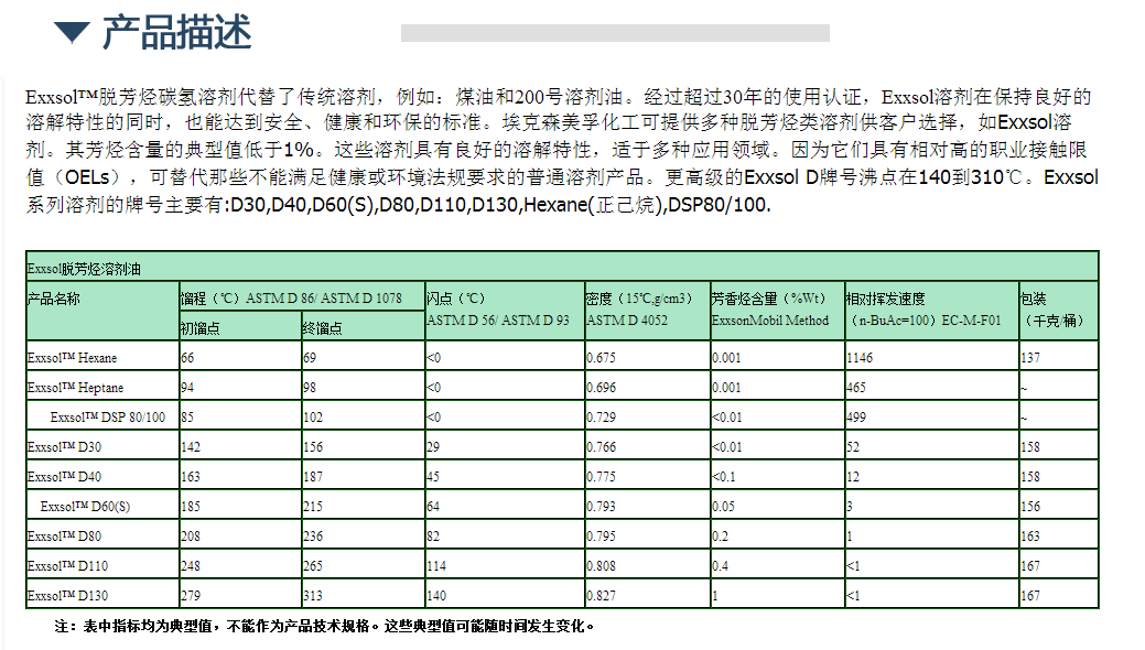 埃克森美孚Exxsol脱芳烃碳氢溶剂