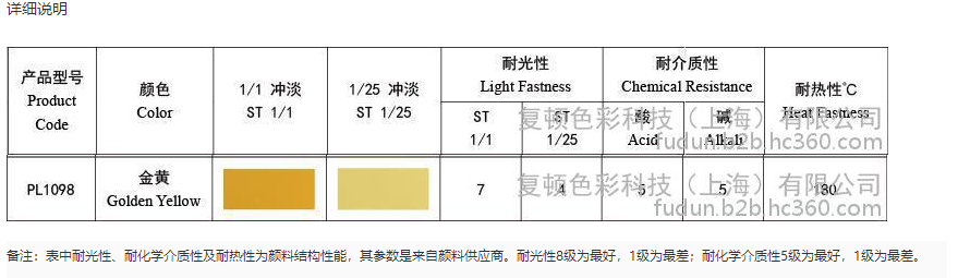 PL1098金黄色浆属于PL系列珠光颜料着色专用水性色浆,是由去离子水、高档环保有机颜料、颜料表面处理剂及多种功能添加剂采用超细研磨工艺加工而成。具有环保性好、着色力强、颜色鲜艳、耐久性好、粒径小且分布窄、易分散等优点。