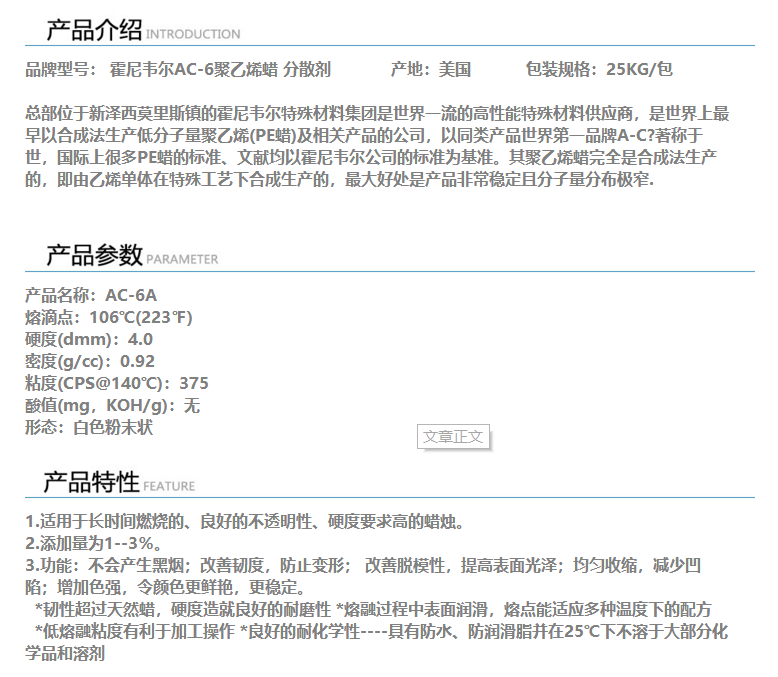 深圳华亿昌 霍尼韦尔分散剂AC-6